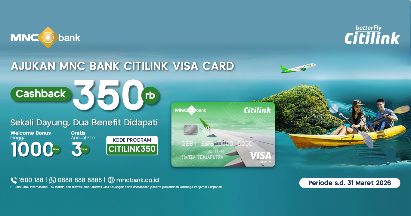 Hanya berlaku untuk pengajuan kartu kredit MNC Bank Citilink Visa Card.