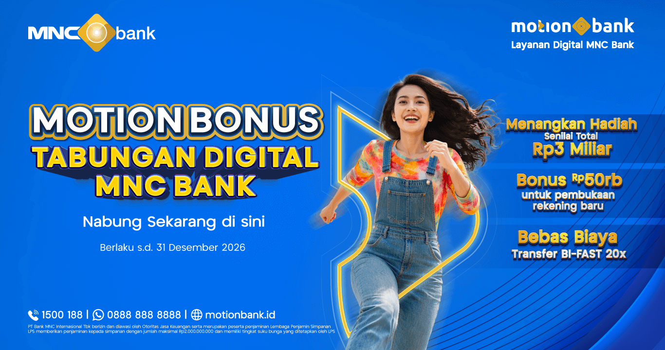 Buka dan tingkatkan saldo tabunganmu di Motion Bonus, tabungan digital MNC Bank yang menghadirkan bonus dan kemudahan transaksi untuk membantu kamu menabung lebih cerdas sejak awal