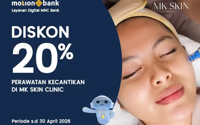 Nikmati DISKON 20% dengan QRIS MotionBank untuk perawatan kulit wajah di MK Skin Clinic.