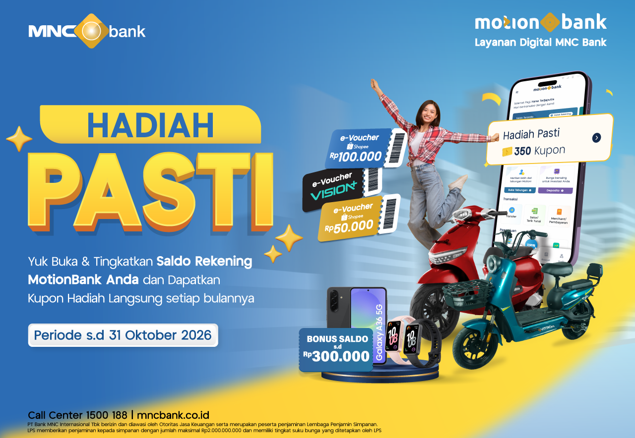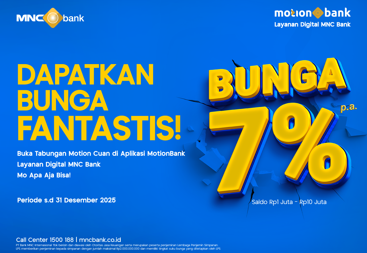 Untuk informasi lebih lanjut mengenai PT Bank MNC Internasional Tbk atau MNC Bank (IDX: BABP), anak usaha PT MNC Kapital Indonesia Tbk (IDX: BCAP), yang berada di bawah naungan MNC Group (IDX: BHIT) dapat menghubungi MNC Bank Call Center di 1500188, akses www.mncbank.co.id dan www.motionbank.id serta ikuti akun resmi media sosial MNC Bank, @officialmncbank dan @motionbankingid di Instagram, MNC Bank di Facebook dan @MNCBank di X.